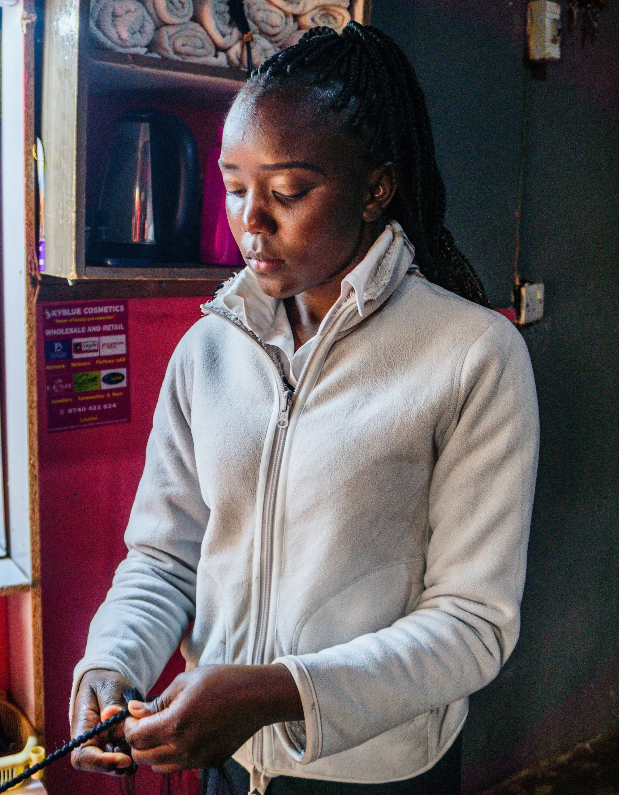 However, life quickly became overwhelming. With the added responsibilities of paying school fees for both her son and niece, servicing the loan, and managing rent, Nadia struggled to stay afloat. During a home visit, she opened up about her challenges. At the time, she ran a small hair salon from the same single-room house where she and the children lived.
